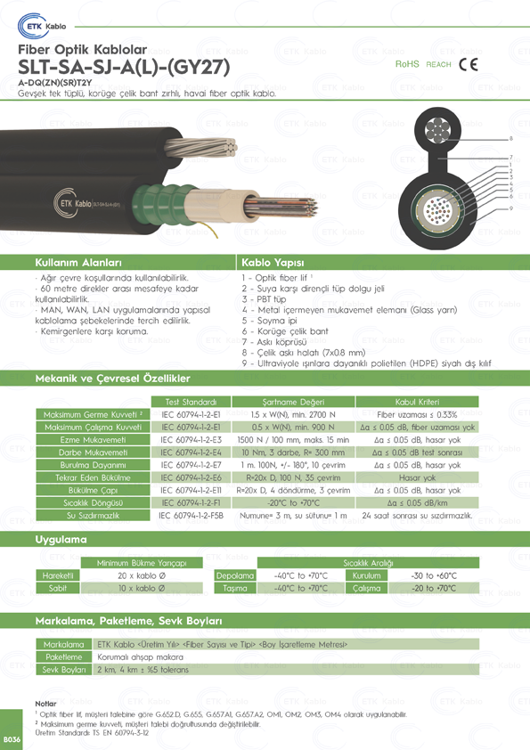 Etk Single Loose Tube Single Jacket Aerial Armored Fiber Optic Cable